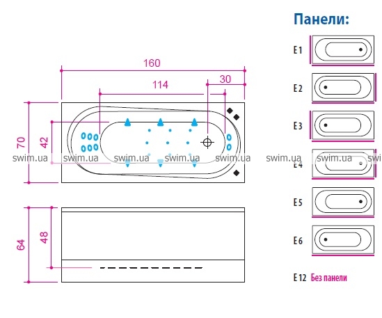 - Аеромасажна ванна з панеллю керування EVO (on/off)