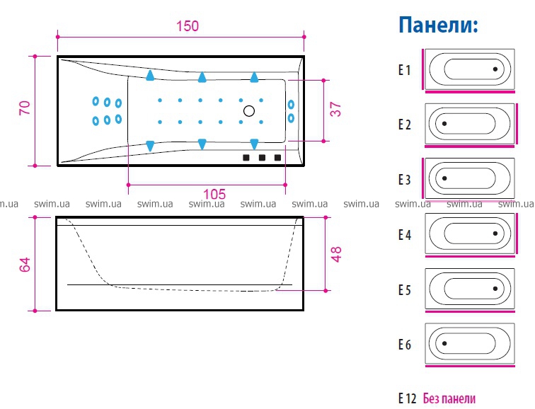 - Включає передню панель (панелі) та комплект зливу-переливу