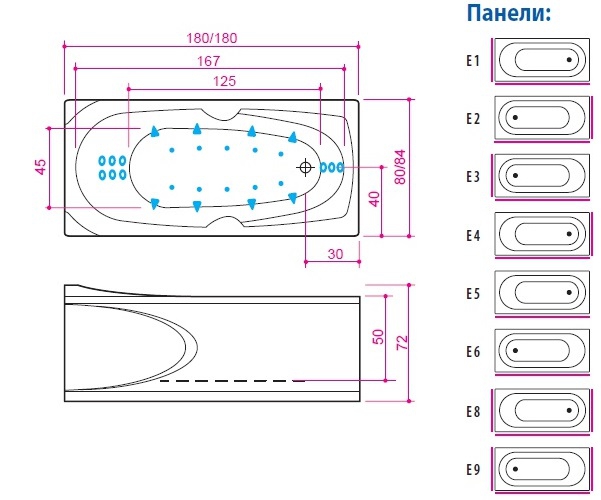 - Аеро- та гідромасажна ванна з панеллю управління EVO+