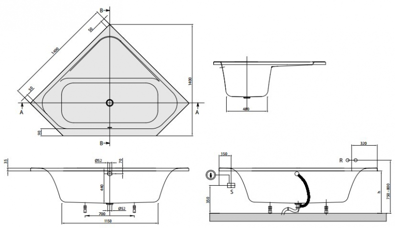 → Ванна из акрила Villeroy&Boch Loop&Friends UBA140LFS3V-XX 140х140 см