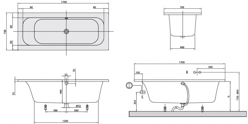→ Ванна из акрила Villeroy&Boch Loop&Friends UBA177LFS2V-XX 170х70 см