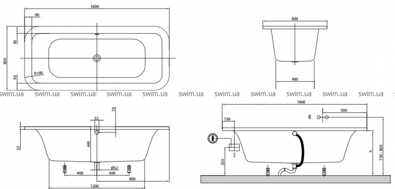ГоловнаВанниVilleroy&Boch → Ванна из акрила Villeroy&Boch Loop&Friends UBA180LFS7V-XX 180х80 см