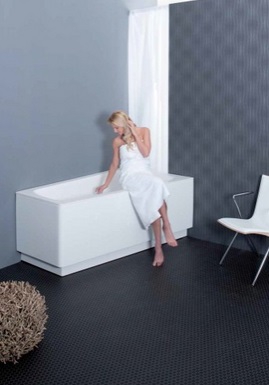 Ванна изготовлена из каменной массы Xonyx™. Декоративная съёмная панель на ванну изготовлена из композитного материала. Ванна оборудована нажимаемым вверх/вниз сливом. У ванны имеется видимое отверстие под перелив, врезанное в корпус ванны. Ванна установлена на прочную раму, у которой имеются регулируемые ножки. Клапан слива - хромированный.