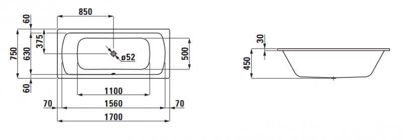 Ванна Laufen Moderna Plus 2.2507.0.000.040.1 170х75 см