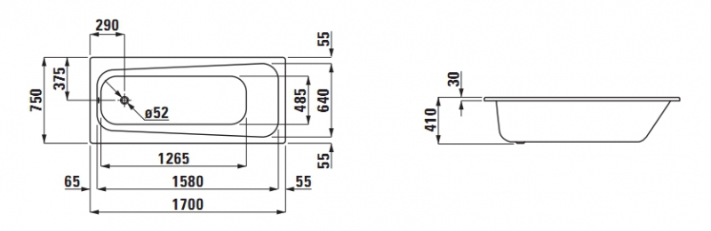 Ванна Laufen Moderna Plus 2.2513.0.600.040.1 170х75 см