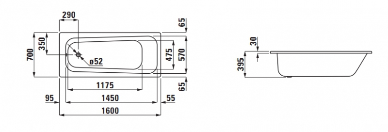 ГоловнаВанниLaufen → Ванна Laufen Moderna Plus 2.2514.0.000.040.1 160х70 см