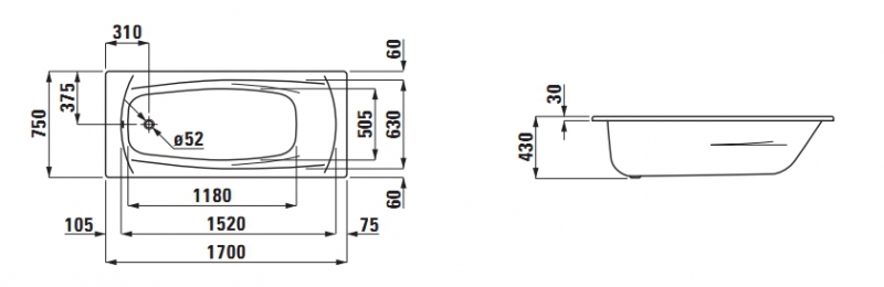 Ванна Laufen Palladium 2.2511.0.600.040.1 170х75 см