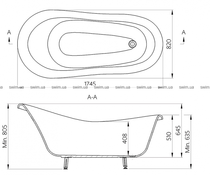 - Размеры: L: 1745 мм, W: 720 мм
