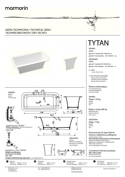 - Декоративна стінка до ванни Tytan (587 060 020 ххх)