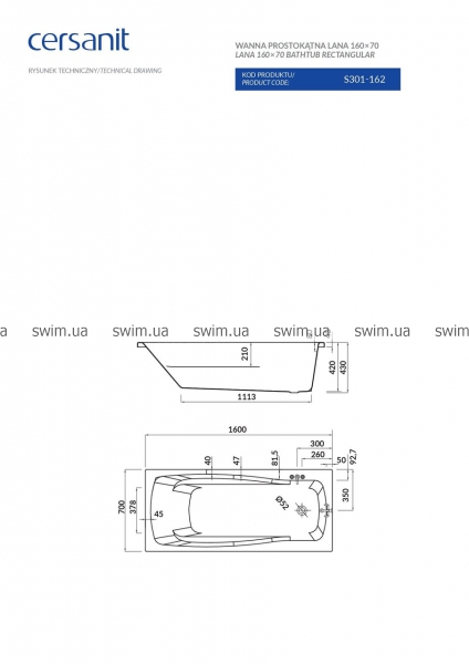 Зручна ванну LANA 160 з ергономічною спинкою та підлокітними зонами, а також широкими краями. Універсальна форма ванни може бути вільно налаштована на будь-який тип та стиль ванної кімнати.