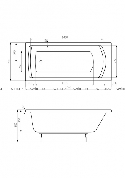 Ванна комплектується ніжками.