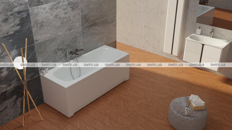 - Додаткові аксесуари: опора, передня та бічна панелі у білому кольорі, стічний комплект для ванн