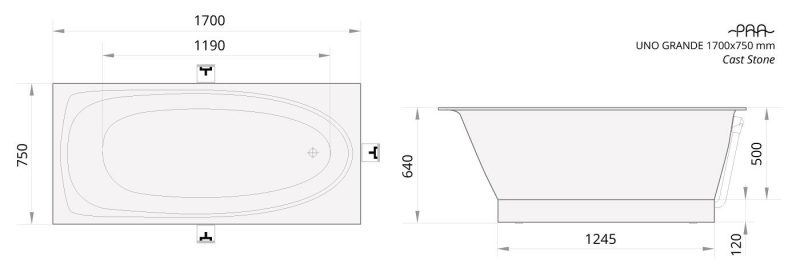 Ванна з каменю PAA Uno Grande VAUNOGR/XX 170х75 см