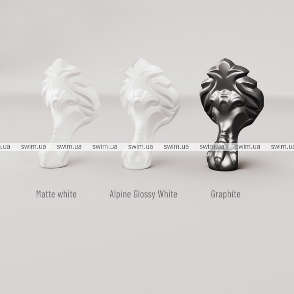 - Є можливість комплектації ванни ніжками з покриттям у кольорі білий, хром, золото, бронза