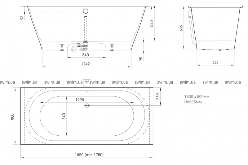 - Врізання отворів під змішувач можливе лише на ванни шириною від 850 мм.
