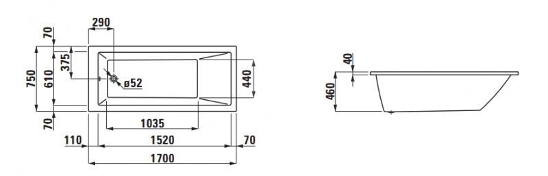 Ванна акриловая Laufen Pro 2.3195.0.000.000.1 170х75 см