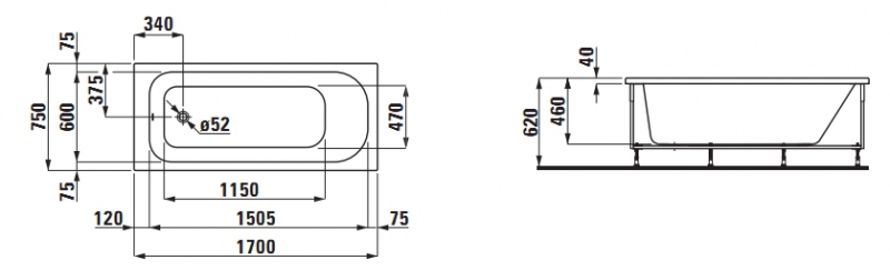 Ванна акриловая Laufen Solutions 2.2350.1.000.000.1 170х75 см