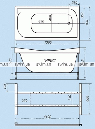 Акриловая ванна «ИРИС». Для малогабаритной ванной комнаты, лицевой экран.