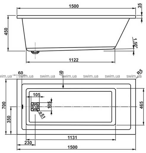 Самая маленькая в диапазоне размера 150x70 см. Практический и современный дизайн.