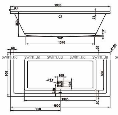 Ванна акриловая Vagnerplast Cavallo 190 VPBA190CAV2X-01/NO