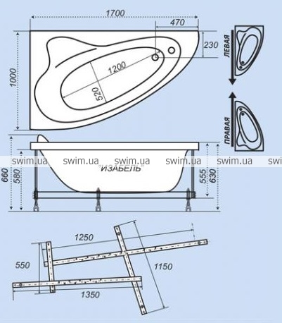 Ванна гідромасажна Triton Изабель L/R 170х100