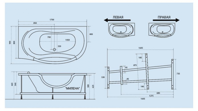 Ванна гідромассажна Triton Милена 170х96