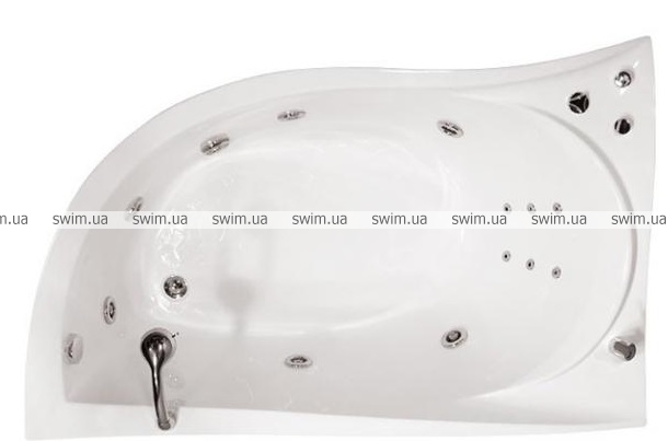 Акрилова гідромасажна ванна "Ніколь". Асиметричні ванни відмінно підійдуть для невеликих ванних кімнат, оскільки максимально використовується зовнішній розмір ванни. Акрилова ванна «Ніколь» при цьому є унікальною та ексклюзивною, тому дійсно стане справжньою прикрасою вашої ванної кімнати.