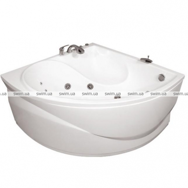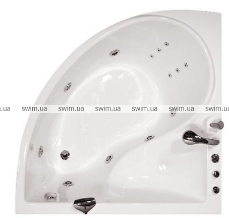 Для розміщення банного приладдя призначений широкий борт біля стіни. На ньому можна розмістити вузли для управління обладнанням, додатково встановленим, а також змішувач. Оригінально оформлене дно цієї кутової ванни при цьому функціональне: воно забезпечує опору та безпеку при купанні. Крім того воно масажне, що забезпечить максимальне розслаблення, коли ви прийматимете ванну. Для повноцінного відпочинку можна додатково розмістити поліуретановий підголівник.