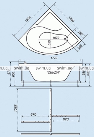 Акрилова гідромасажна ванна «Сінді». Компактна та елегантна кутова ванна «Сінді» характеризується достатнім внутрішнім об'ємом – 300 літрів. Максимально вертикальні борти цієї акрилової ванни дозволяють досягти такого обсягу, а значить, і комфортного розміщення усередині ванни. Сидіння виглядає витонченим та відмінно оформленим, лаконічно доповнюючи внутрішню геометрію гідромасажної ванни. При цьому воно дуже практичне у використанні і зручне.