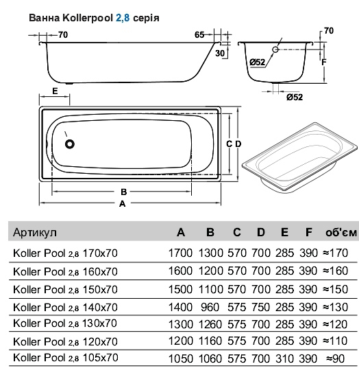 Ванна стальная Koller Pool 105х70E 2.8 мм