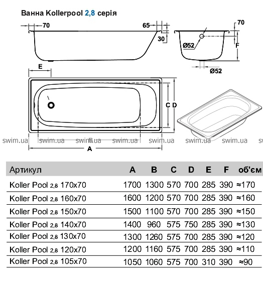 Ванна стальная Koller Pool 150х70E 2.8 мм