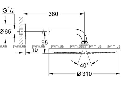 Верхний душ Grohe Rainshower Cosmopolitan 310 26066AL0 с кронштейном