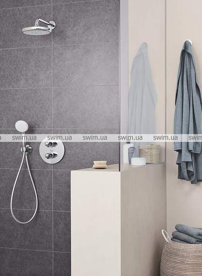 Пришло время добавить качество и комфорт в вашу ванную с роскошным набором верхнего душа GROHE Tempesta 210, который включает в себя верхний душ диаметром 210 мм с обволакивающим режимом Rain.