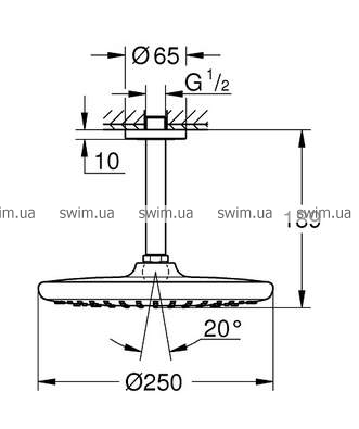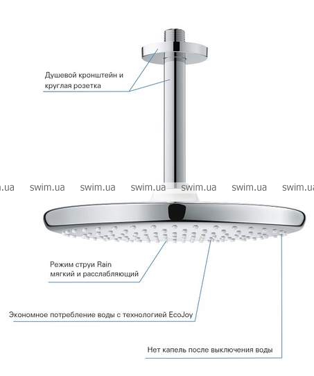 → Верхний душ Grohe Tempesta 250 26669000 с кронштейном к потолку с EcoJoy