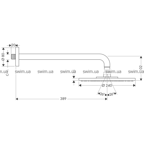 → Верхний душ Hansgrohe Raindance S 240 27474000 1jet с держателем 390 мм