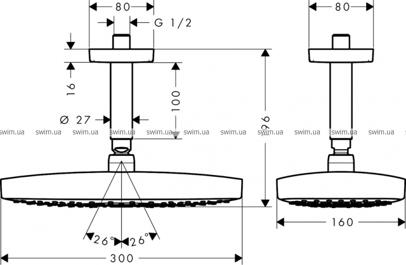 Верхний душ Hansgrohe Raindance Select E 300 2jet EcoSmart 26608000