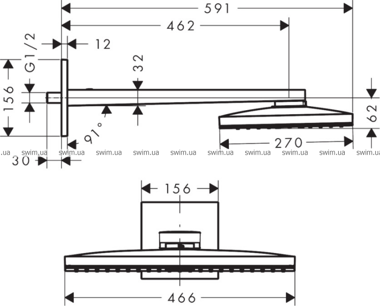 - размер душевого диска: 460х270 мм