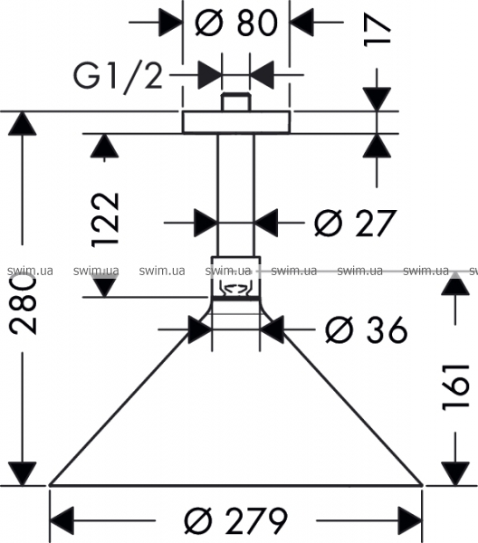 - длина потолочного подсоединения: 280 мм