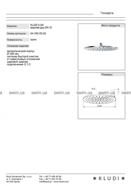 Верхній душ Kludi DN 15 A-QA 6433005-00