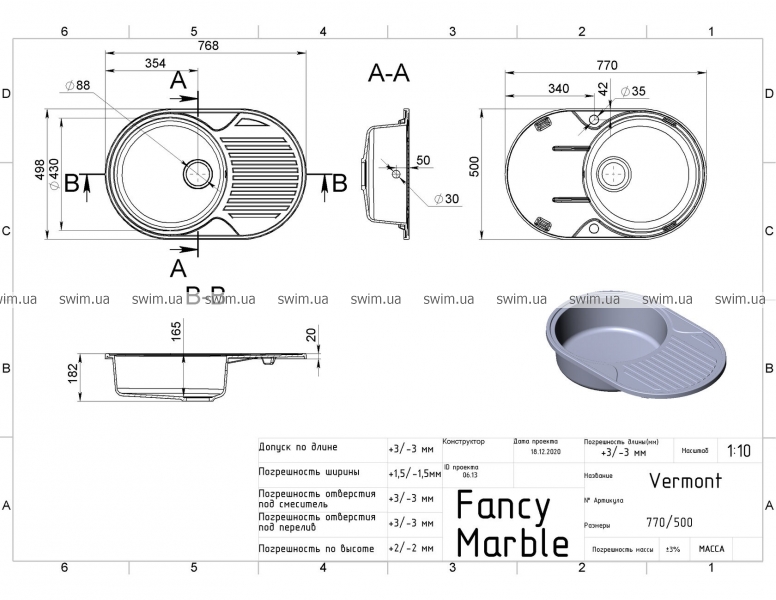 - Матеріал: Magranit гранітний композит (смола та гранітна крошка)