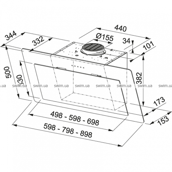 - Рекомендована відстань від варильної поверхні 450 мм від електричної / 650 мм від газової