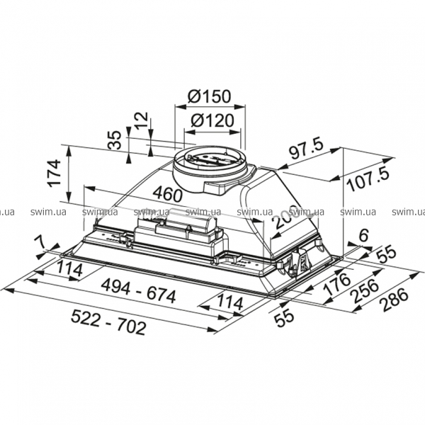 - Розмір вихідного отвору Ø150 мм (+перехідник Ø120 мм)