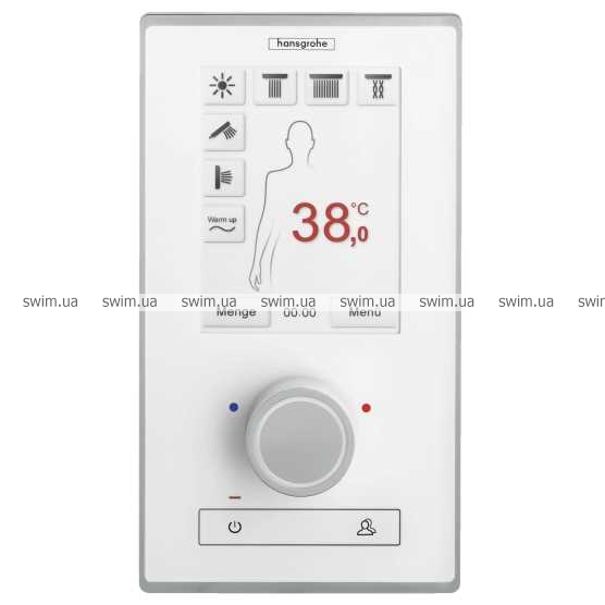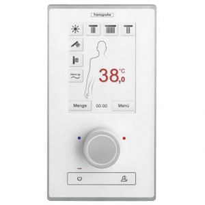 - электронное управление душем с помощью сенсорного экрана TouchScreen для управления пятью душами (например, Raindance Rainmaker с душевой функцией, ручным душем и боковыми форсунками)