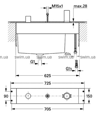 Встраиваемый механизм для однорычажного смесителя для ванны GROHE (артикул 33339000) на три отверстия
