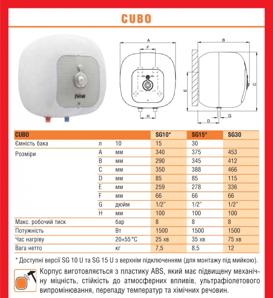 → Водонагреватель (бойлер) Ferroli Cubo SG10 SVE 1.5 U GRB6TY1A