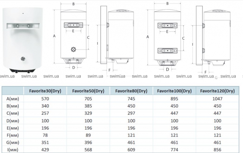 Водонагрівачі FAVORITE30/50/80/100/120 мають клас захисту IPX4 та оснащені: