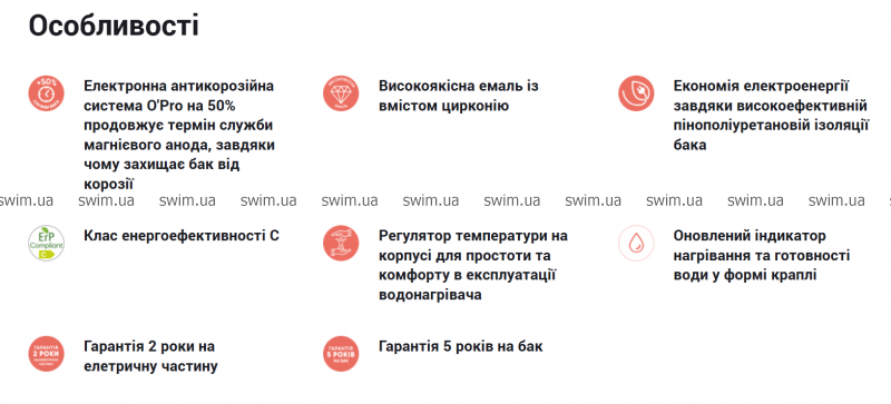 Виробник надає гарантію на бак бойлера із серії O'Pro Horizontal протягом 5 років, а на електронну частину – протягом 2-х років.