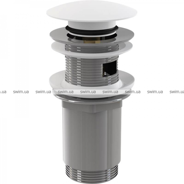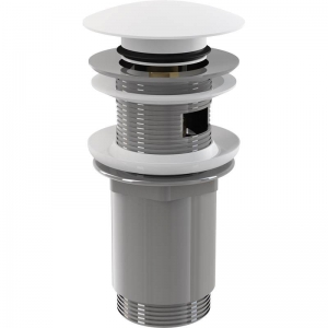 - Донный клапан сифона для умывальника CLICK/CLACK 5/4", цельнометаллический с переливом и большой белой заглушкой