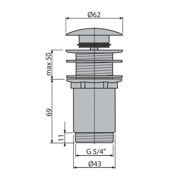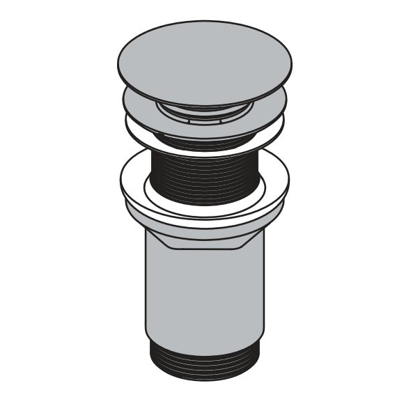 A395B ДОННЫЙ КЛАПАН ДЛЯ УМЫВАЛЬНИКА CLICK/CLACK 5/4", ЦЕЛЬНОМЕТАЛЛИЧЕСКИЙ БЕЗ ПЕРЕЛИВА С БОЛЬШОЙ ЗАГЛУШКОЙ, ДЛЯ ПЛАСТИКОВЫХ И СТЕКЛЯННЫХ УМЫВАЛЬНИКОВ