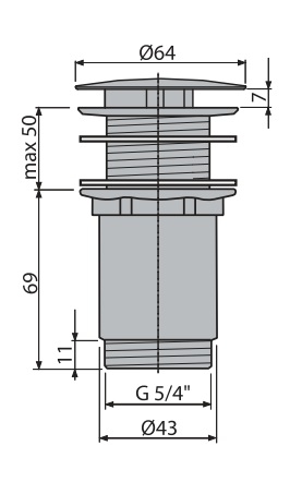 A396 ДОННЫЙ КЛАПАН ДЛЯ УМЫВАЛЬНИКА 5/4" ЦЕЛЬНОМЕТАЛЛИЧЕСКИЙ С БОЛЬШОЙ ПРОБКОЙ, ДЛЯ УМЫВАЛЬНИКОВ БЕЗ ПЕРЕЛИВА